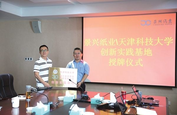 儀式上,劉洪斌向公司授予“創(chuàng)新實(shí)踐基地”牌匾,同時(shí)聘用徐東、曹海兵、魯賓、程正柏、徐清涼5 人為天津科技大學(xué)造紙學(xué)院企業(yè)導(dǎo)師并頒發(fā)聘書。