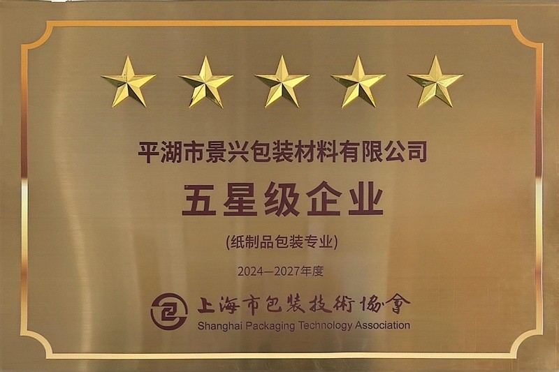 喜報!景興紙業全資子公司平湖景包被上海市包裝技術協會授予紙制品包裝專業“五星級企業”榮譽稱號